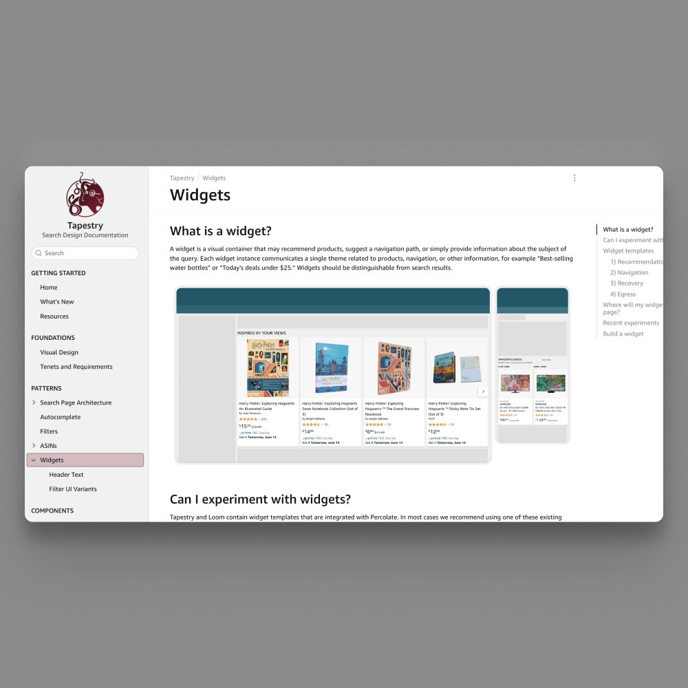We improved our documentation site by simplifying the navigation and updating the content, reducing it by more than 50%, making it easier for designers to read through and understand quickly and easier to maintain. We eventually merged our documentation with that of the Amazon Shopping Design team which was another large project that created efficiencies for creating and consuming teams.